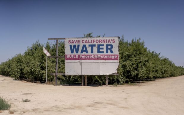Top Photo: A sign supporting the construction of additional dam storage near Ducor, Calif. Photographer: Kyle Grillot/Bloomberg