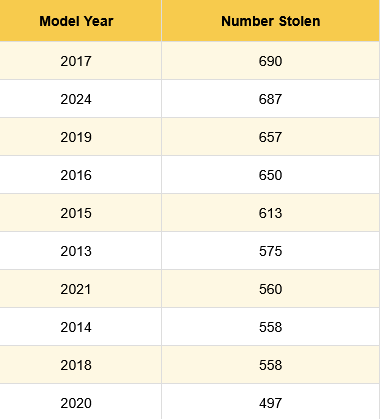 Data compiled by the Auto Crime Tracker database shows that in 2025, vehicle thefts totaled 12,686.