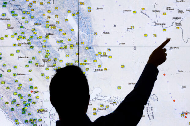 In a control room in PG&E’s San Ramon, California, office, a giant map looms, dotted with transmission lines, cutting across mountains and valleys, running alongside rivers and streams. It’s here that Scott Strenfel, PG&E’s senior director of meteorology and fire science, along with his team of seven forecasters, monitors the weather and decides when the risk of fire is too great to keep energy flowing across the utility’s vast transmission and distribution system.