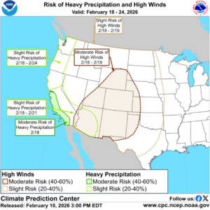 Following a dry period, meteorologists are monitoring the potential for heavy precipitation in coastal central and southern California beginning on February 18.